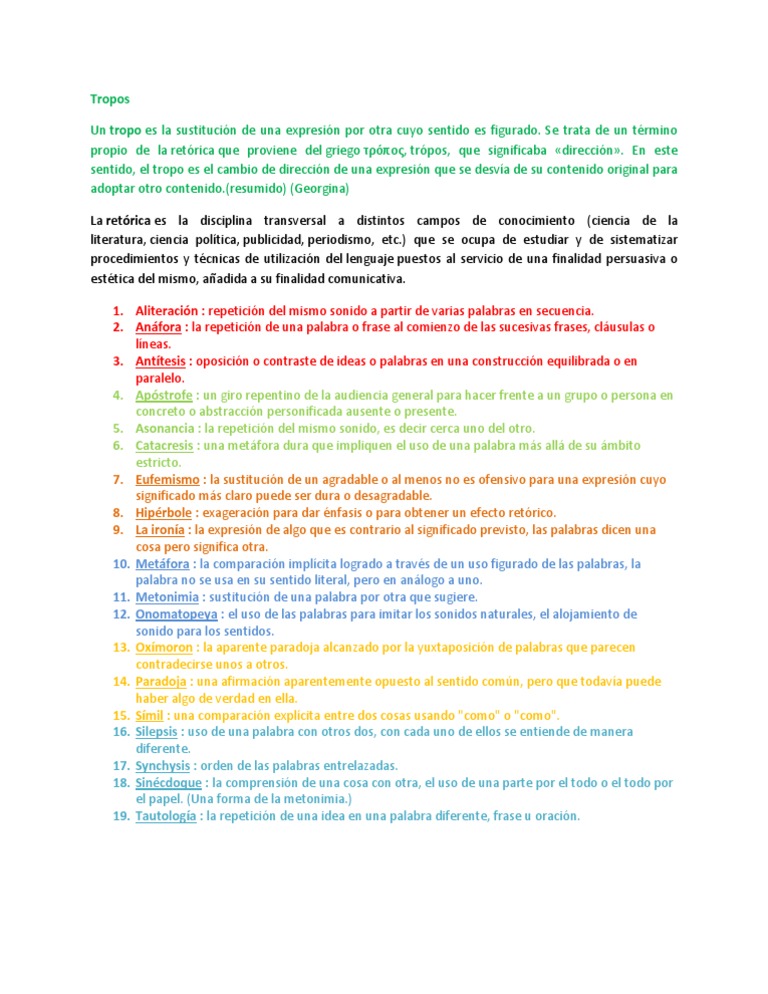 Que Son Los Tropos Clasificacion Y 44 Ejemplos Escuela De Letras