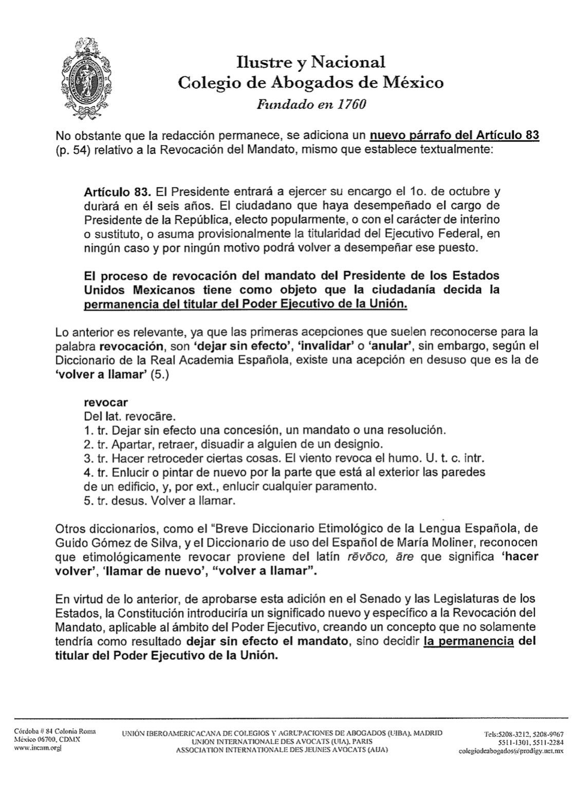 Juvenal Lobato Diaz On Twitter Comparto Posicionamiento Del Incam Abogados Sobre El Dictamen En Materia De Revocacion De Mandato Y Consulta Popular 1 2 Https T Co Aebmbqwe5u