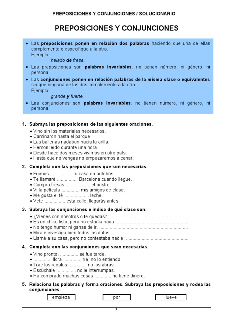 Cojunciones Y Preposiciones Juegos Y Ejercicios Para Ninos