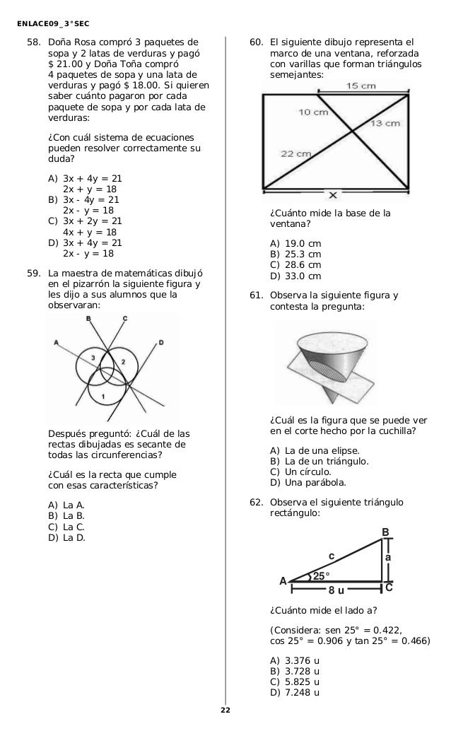 El siguiente dibujo representa el marco de una ventana reforzada con varillas que forman triángulos semejantes 15 cm 10 cm 13 cm 22 cm X cm Cuánto mide la base de la ventana. A 810 47 B 107 57 C 145 75 D 148 74 El siguiente dibujo representa el marco de una ventana reforzada con varillas que forman triángulos semejantes. A 190 cm B 253 cm C 286 cm D 330 cm 11Indica la medida que representa el segmento BC del triángulo rectángulo de la siguiente.