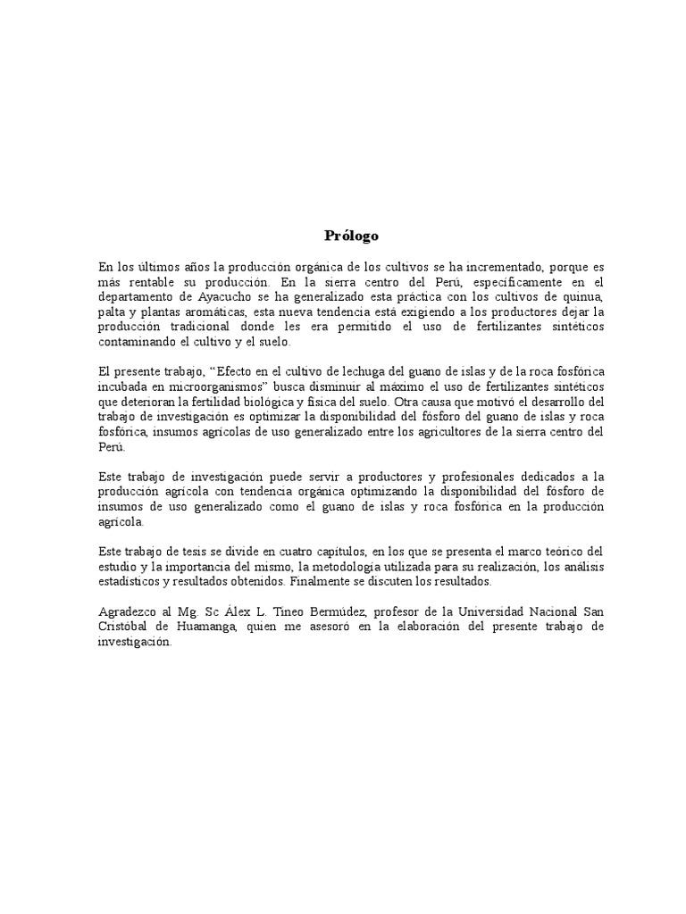Prologo Y Resumen De Tesis Pdf Agricultura Fertilizante