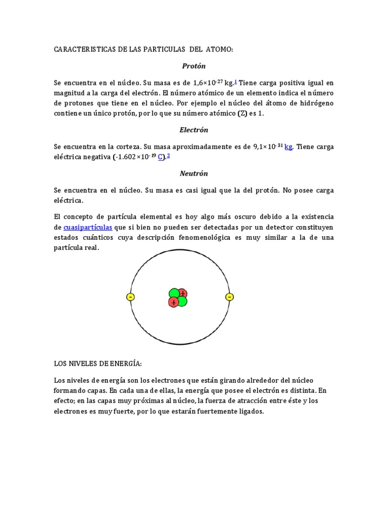 Caracteristicas De Las Particulas Del Atomo Pdf Orbital Atomico Atomos